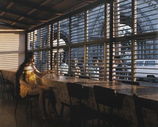 I'm not usually impressed with most modern photography. I find most photographers focus on dragging unimaginative, uncompelling compositions through a fancy filter and then expect everyone to care. This is especially moot considering the ease of deriving these effects with digital technology that even a I-phone camera can accomplish. That is why I love the work of this next artist, Philip Lorca de Corcia. He's been working in photography since the 1970's, mostly in the North east. His work focuses on people taking part in rather mundane activities: going to the bar, tripping over the sidewalk, going to the store, etc. I know, this has all been done before. However, de Corcia's work lends such gravity and drama to each of these activities that each moment captured is heart-wrenching, isolating, and moving. While some of his pieces are assembled tableaus, a lot of his photos were taken of regular people on the street (some of which were not very happy about it: see below). I was especially impressed with a series of photos de Corcia took of pole dancers in baroque-esque lighting. I've included one below, but you should check out the others, since they are awesome.